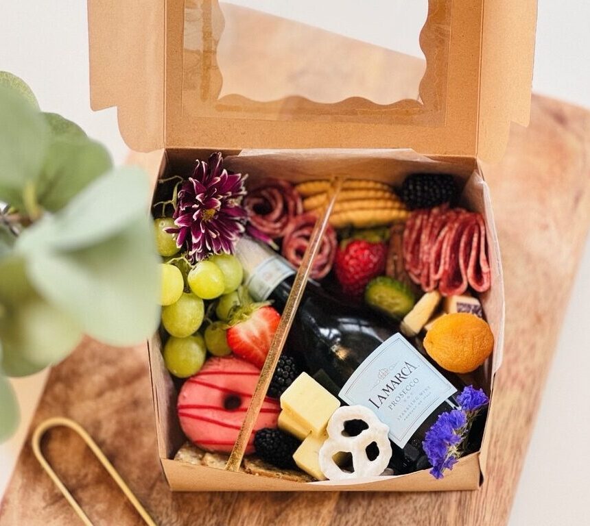 erves 1–2 guests. An intimate grazing experience presented in a 6″ × 6″ box, including a mini sparkling wine, 2–3 artisanal cheeses, 2 premium cured meats, fresh and dried fruits, sweet elements, honey or preserves, crackers, and nuts.