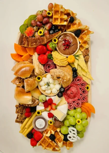Personal size( 12 oz), contains 1 cheese, 1 meat, fresh and dried fruits, pickles, olives, chocolate, crackers- minimum 10 orders